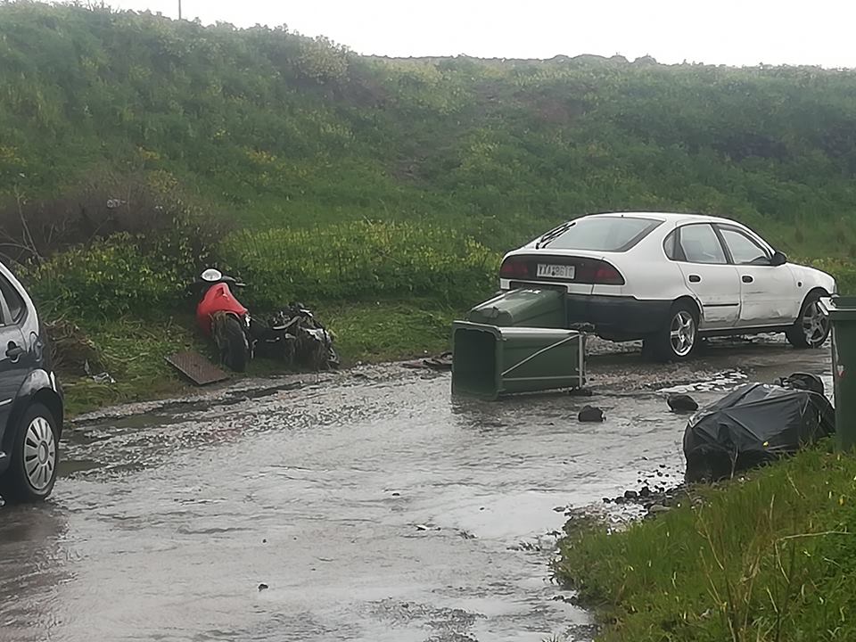 Σύμφωνα με τις διαδοχικές αναρτήσεις του κ. Δαρζέντα στον προσωπικό λογαριασμό του σε μέσον κοινωνικής δικτύωσης, αρκετές καταστροφές προκύπτουν συνεχώς στο νησί και μάλιστα σε κεντρικά σημεία δρόμων, από όπου και απαιτείται να μην διέρχονται οι οδηγοί για την ασφάλειά τους.
