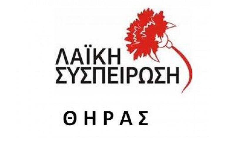 Η Λαική Συσπείρωση ζητά την άμεση αποκατάσταση του δημοτικού φωτισμού και την απαλλαγή των Θηρασιωτών από τα δημοτικά τέλη για όλο αυτό το χρονικό διάστημα που βρίσκεται η Θηρασιά και οι κάτοικοί της , στο σκοτάδι. Είναι το ελάχιστο που μπορούν να κάνουν Δημοτική Αρχή και ΔΕΗ.