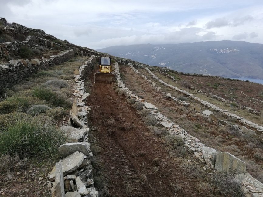 Στο πλαίσιο του έργου LIFE TERRACESCAPE, ο Δήμος Άνδρου έχει ξεκινήσει εδώ και δύο μήνες την καλλιέργεια επιλεγμένων χωραφιών σε αναβαθμίδες. Σκοπός είναι η επανακαλλιέργειά τους για την παραγωγή υψηλής ποιότητας τοπικών προϊόντων.