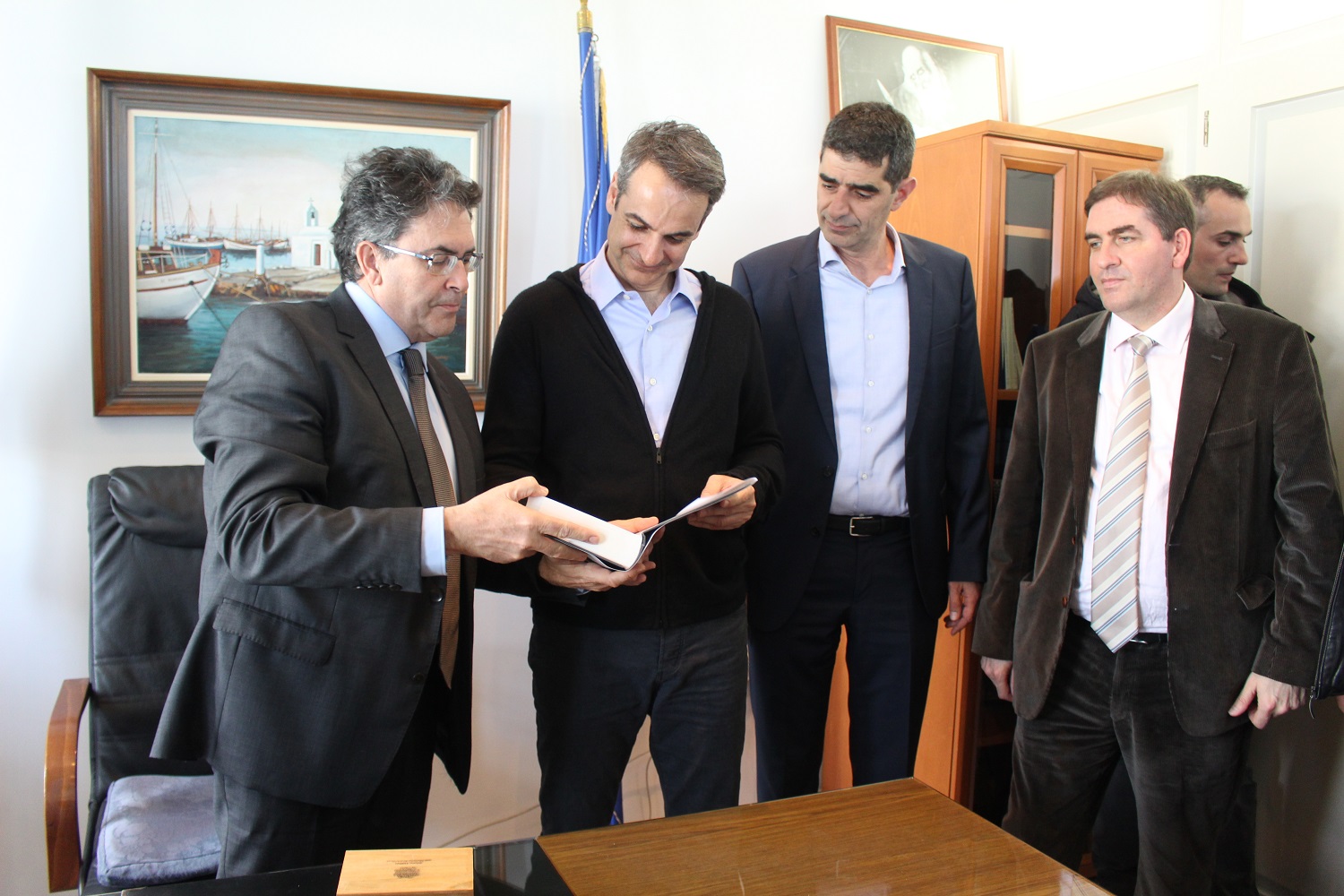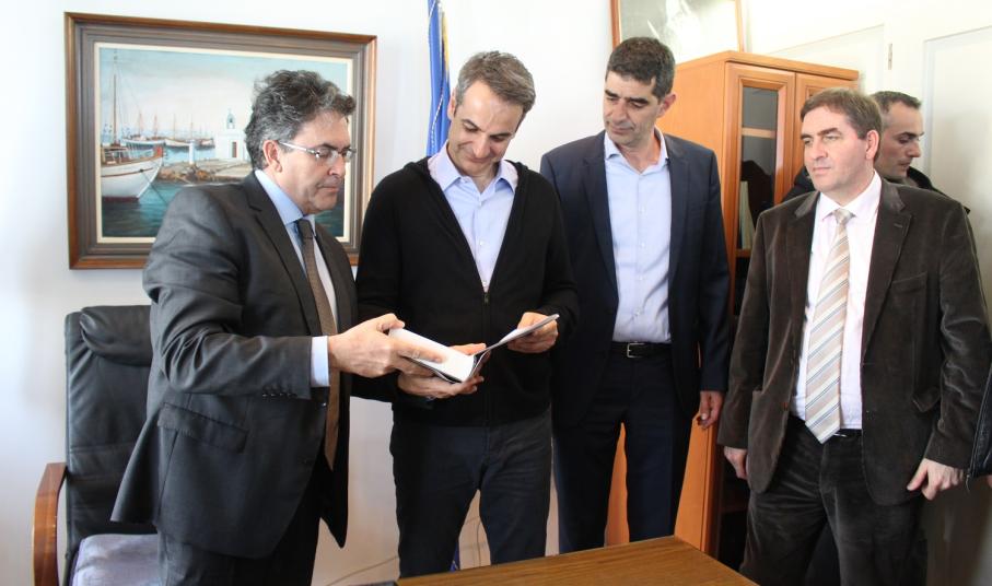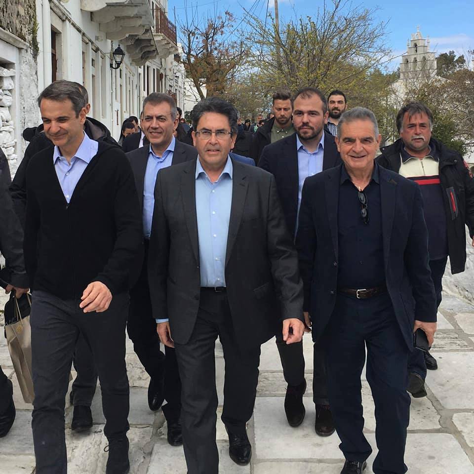 Ο Δήμαρχος Νάξου και Μικρών Κυκλάδων Μανόλης Μαργαρίτης με τους συνεργάτες του υποδέχθηκε στο γραφείο του τον Αρχηγό της Αξιωματικής Αντιπολίτευσης κ. Κυριάκο Μητσοτάκη και το επιτελείο του, στο πλαίσιο της επίσκεψης του στη Νάξο, την Τετάρτη 10 Απριλίου. Τον κ. Μητσοτάκη συνόδευε ο γ.γ. της Ν.Δ. Λευτέρης Αυγενάκης, ο Βουλευτής Κυκλάδων και υποψήφιοι Βουλευτές του κόμματος.