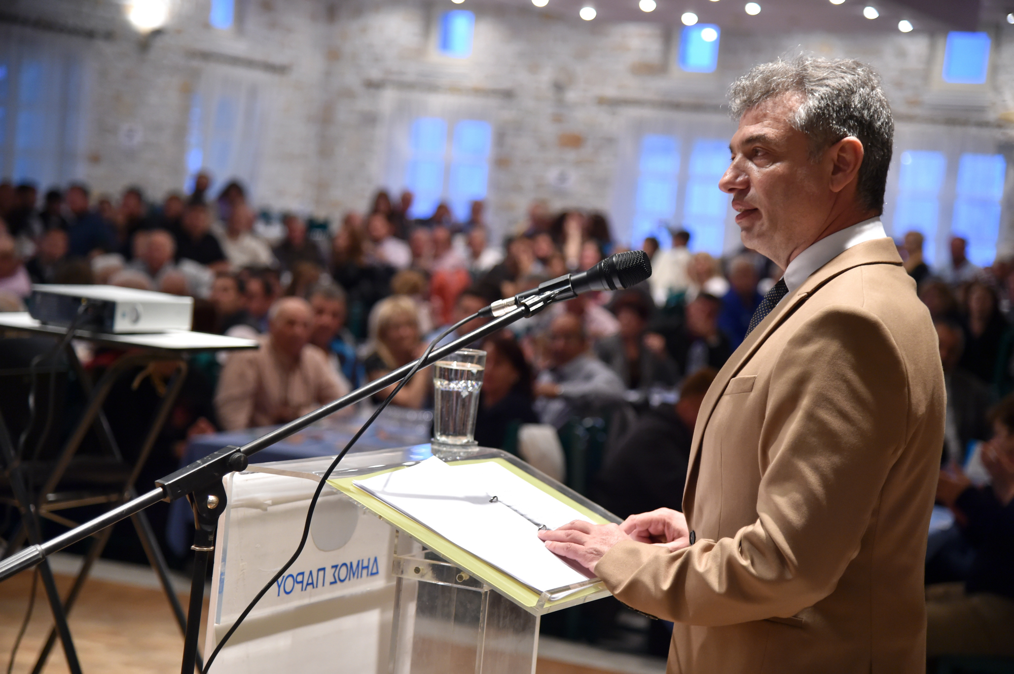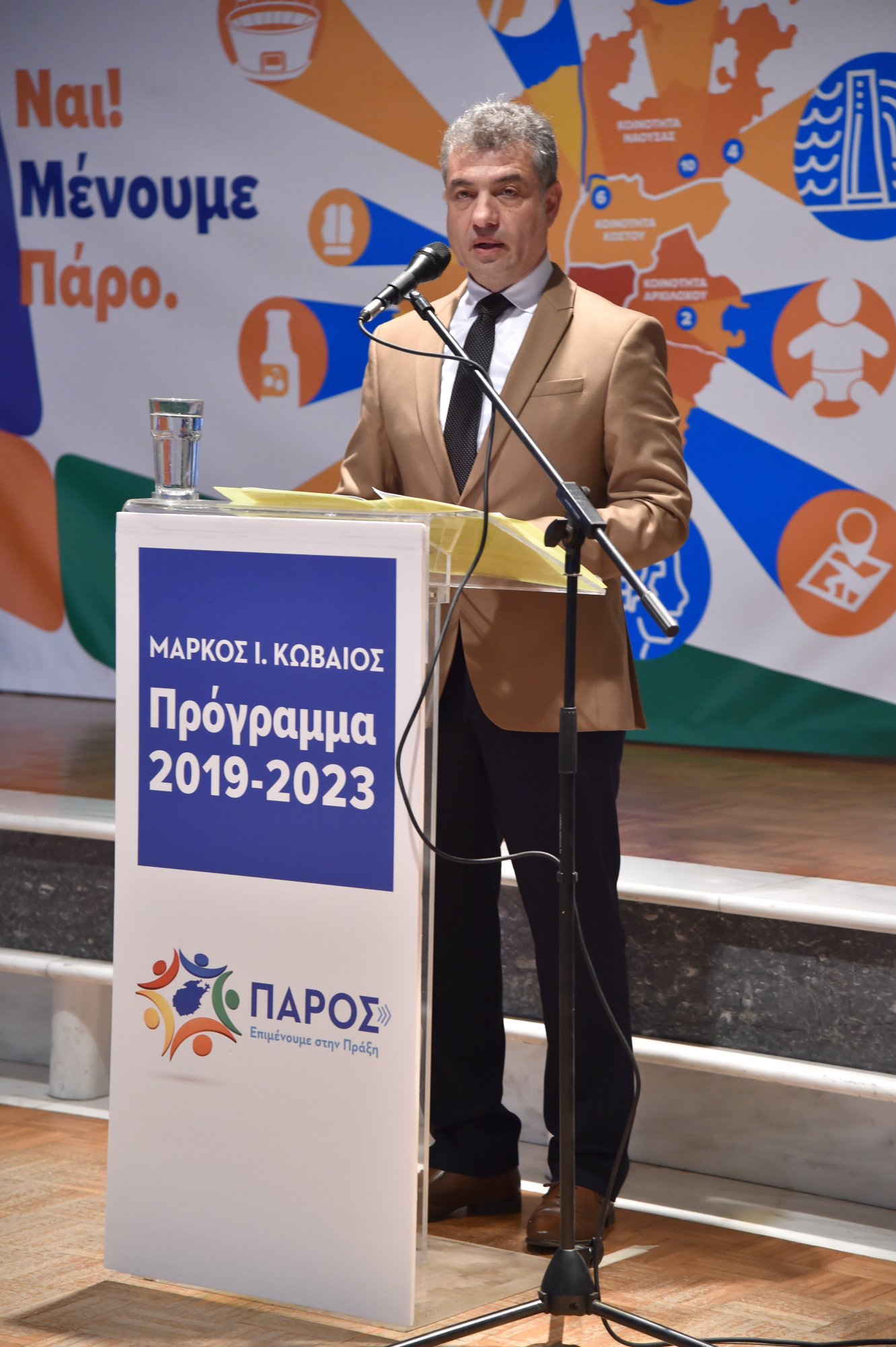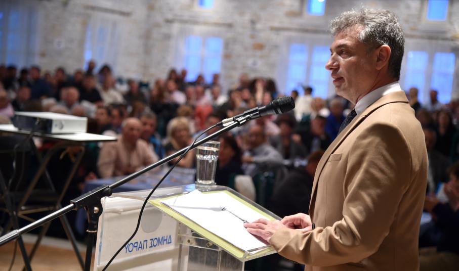 Η μεγαλύτερη προεκλογική συγκέντρωση στην ιστορία της Πάρου πραγματοποιήθηκε χθες το βράδυ στην εκδήλωση του συνδυασμού «Πάρος, Επιμένουμε στην Πράξη». Πάνω από 700 άτομα κατέκλυσαν την αίθουσα «Μινώα» στη Νάουσα για να δουν τον Δήμαρχο Πάρου, Μάρκο Ι. Κωβαίο, να παρουσιάζει το πρόγραμμα του για την περίοδο 2019-2023. Μέσα σε ένα πανηγυρικό κλίμα, όπου ο κόσμος διέκοπτε συχνά την ομιλία για να χειροκροτήσει με ενθουσιασμό, ο Δήμαρχος ανέπτυξε τη βασική φιλοσοφία του προγράμματός του, στον πυρήνα του οποίου βρίσκεται η αειφορία.