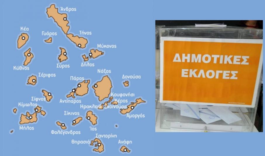 Νυν, αλλά και πρώην Δήμαρχοι, καθώς και πλειάδα νέων προσώπων, διεκδικούν την ψήφο των νησιωτών, στις επερχόμενες δημοτικές εκλογές. Σε αρκετά μικρά νησιά οι συνδυασμοί υπερβαίνουν τους τρεις, ενώ η Σίκινος αποτελεί το μοναδικό Δήμο, που ο νυν Δήμαρχος κατέρχεται χωρίς κανέναν αντίπαλο.