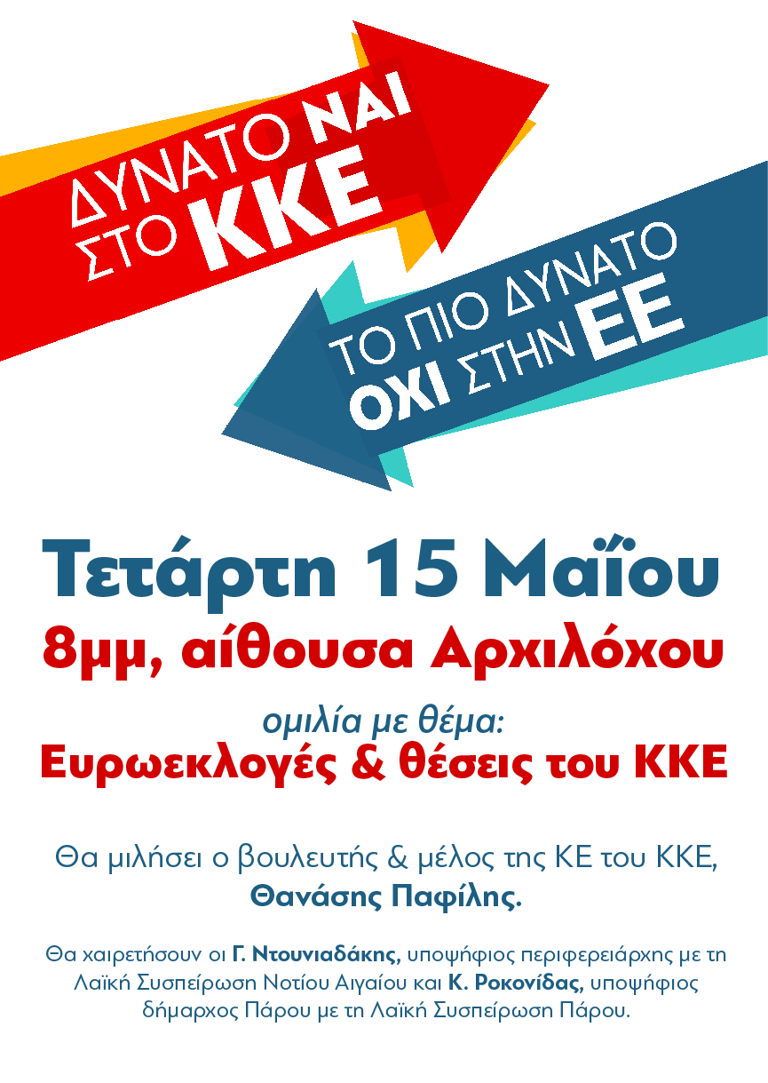 Ο βουλευτής και μέλος της ΚΕ του ΚΚΕ, Θανάσης Παφίλης θα επισκεφθεί την Πάρο προκειμένου να πραγματοποιήσει ομιλία για τις Ευρωεκλογές και τις θέσεις του Κομμουνιστικού Κόμματος.