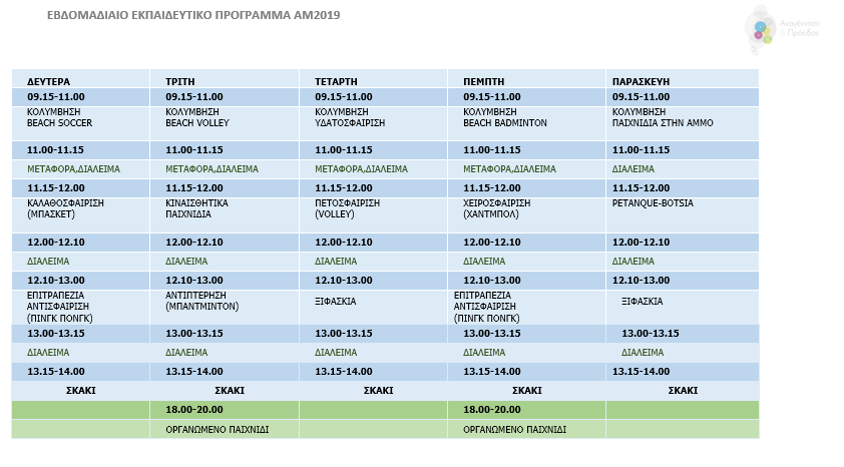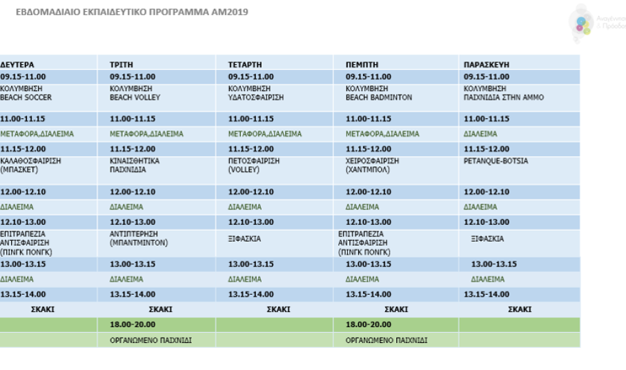 Ο Δήμος Αμοργού ενημερώνει ότι το πρόγραμμα “Αθλητικά μονοπάτια, Καλοκαίρι 2019” που διοργανώνεται από το Τμήμα Αθλητικής Αριστείας και την ΑΜΚΕ Αναγέννηση & Πρόοδος” υπό την επιστημονική επίβλεψη της Α΄ Ορθοπαιδικής Κλινικής του ΕΚΠΑ, με αποκλειστική δωρεά από το “Ίδρυμα Σταύρος Νιάρχος”, ξεκινάει από Δευτέρα 1η Ιουλίου και θα διαρκέσει έως 21 Ιουλίου, εκτός Σαββατοκύριακου. Περιλαμβάνει μαθήματα ασφαλούς κολύμβησης και άλλες αθλοπαιδιές που πραγματοποιούνται στη θάλασσα, τα οποία θα πραγματοποιηθούν στα Κατάπολα. Επίσης θα πραγματοποιηθούν και διάφορα άλλα αθλήματα τα οποία αναφέρονται στο ωρολόγιο πρόγραμμα που δημοσιεύεται και τα οποία θα πραγματοποιηθούν στο χώρο του Γυμνασίου της Χώρας.