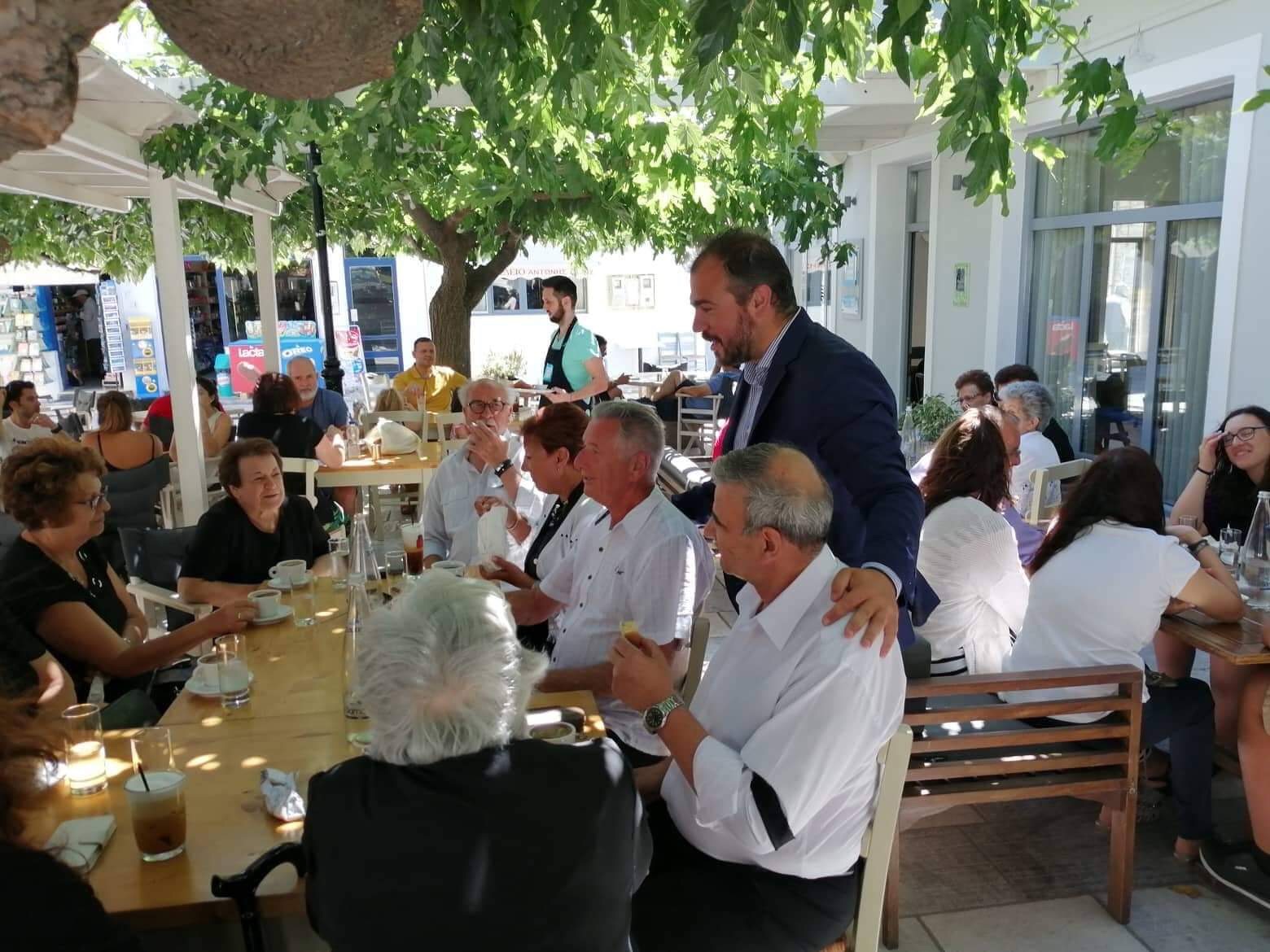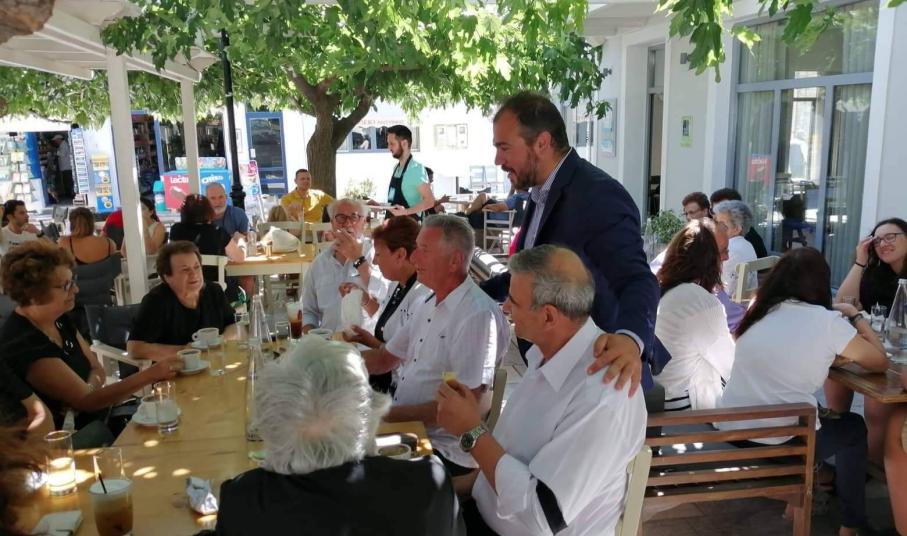 Πιο συγκεκριμένα,  βρέθηκε το νησί της Μυκόνου όπου είχε επαφές με κομματικά στελέχη και ενεργούς πολίτες . Ακολούθως, επισκέφθηκε το Δημαρχείο Μυκόνου και έγινε δεκτός από τον δήμαρχο του νησιού κ. Κωνσταντίνο Κουκά.   Συμμετείχε δε στην συνεδρίαση του Δημοτικού Συμβουλίου, όπου απηύθυνε σύντομο χαιρετισμό και διαβεβαίωσε τους παριστάμενους ότι στο πρόσωπο του βλέπουν έναν πραγματικό σύμμαχο που την επόμενη τετραετία θα σταθεί αρωγός για την καλύτερη δυνατή αντιμετώπιση των προβλημάτων του νησιού.