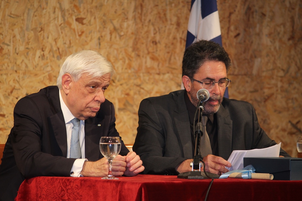 Ο Δήμαρχος καλωσόρισε τον ΠτΔ στη Νάξο, «τον τόπο, που επί χιλιάδες χρόνια γεννά και προάγει τον πολιτισμό, την παιδεία και τις τέχνες. Ως ελάχιστο οφειλόμενο χρέος του Δήμου προς εσάς, τόσο για την αποδοχή της πρόσκλησης, όσο και για τη μεγάλη προσφορά και συνδρομή σας στο δημόσιο βίο της χώρας, στην επιστήμη, την πνευματική ζωή, την ενίσχυση της τοπικής αυτοδιοίκησης και των θεσμών, το Δημοτικό μας Συμβούλιο αποφάσισε ομόφωνα, να σας ανακηρύξουμε επίτιμο δημότη».
