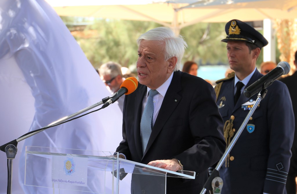 Αφού αναφέρθηκε αναλυτικά στην ιστορία του νησιού, αλλά και στα μηνύματα που αυτή εμπνέει για την αντιμετώπιση των σύγχρονων ζητημάτων της χώρας και των εθνικών θεμάτων, κυρίως σε σχέση με την Τουρκία, ο Πρόεδρος της Δημοκρατίας αναφέρθηκε ξανά στην ναξία σμύριδα, τονίζοντας, ότι «η ναξία σμύριδα χάραξε την πορεία της Νάξου, ως ενός τόπου, ο οποίος από τη γη του, από τα σπλάχνα του έβγαλε πράγματα, τα οποία βοήθησαν ετούτο τον τόπο σε δύσκολους καιρούς. Ύστερα, αυτός ο τόπος είχε την τύχη να τον υμνήσουν και να τον θυμούνται μεγάλοι και πολλοί διανοητές του αρχαίου πνεύματος. [...] Σε ετούτο το νησί, τη Νάξο, αλλά και τις Μικρές Κυκλάδες, εμπνέει τον καθένα και πολύ περισσότερο εμένα η ιστορία και ο τόπος», ενώ υπογράμμισε, πως «ο καθένας από σας μπορεί να αντιληφθεί όχι μόνο το σεβασμό μου, αλλά και τη συγκίνησή μου για αυτή τη μεγάλη τιμή, αλλά και για τη δυνατότητα που μου δίνει».