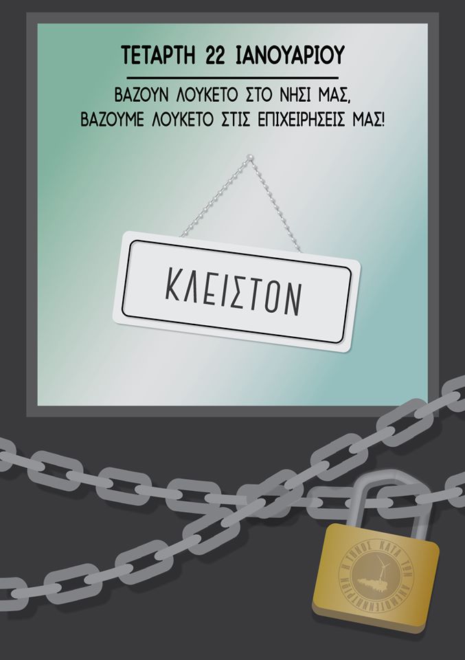 Η αφίσα της απεργίας δημοσιεύθηκε στη σελίδα "Η Τήνος κατά των ανεμογεννητριών".