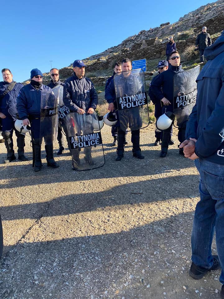Πρωτόγνωρες εικόνες για το νησί της Τήνου, όπου αποβιβάστηκε αστυνομική δύναμη 40 ατόμων και τεσσάρων περιπολικών οχημάτων, προκειμένου να καμφθεί η αντίδραση των Τηνίων πολιτών, που αντιτίθενται σθεναρά στην εγκατάσταση αιολικών πάρκων στο νησί, υπό το παρόν θεσμικό πλαίσιο.