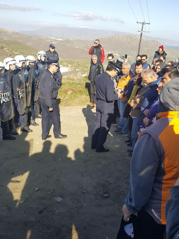 Αξίζει να σημειωθεί επίσης, ότι η Αστυνομική Διεύθυνση Κυκλάδων εξέδωσε ανακοίνωση για προσωρινά κυκλοφοριακά μέτρα, απαγορεύοντας την κυκλοφορία οχημάτων (πολιτών και Δήμου) στο δρόμο που οδηγεί προς το οικόπεδο της επένδυσης, προκειμένου να διασφαλιστεί η απρόσκοπτη μετακίνηση των οχημάτων που μετέφεραν το μπετόν για τη δημιουργία των βάσεων των ανεμογεννητριών.
