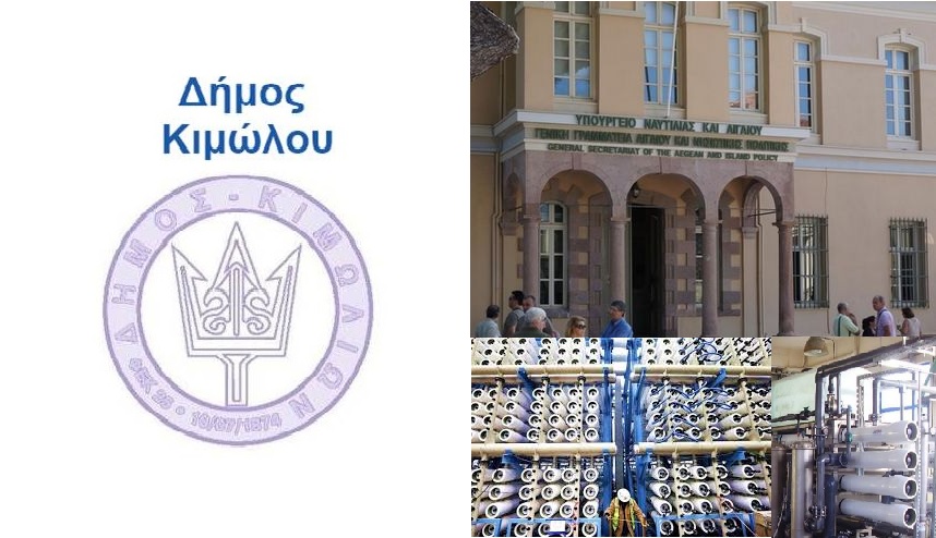 Στην υπογραφή Προγραμματικής Σύμβασης με την Γενική Γραμματεία Αιγαίου & Νησιωτικής Πολιτικής με θέμα την «Συντήρηση – παρακολούθηση καλής λειτουργίας της μονάδας αφαλάτωσης δυναμικότητας 600 κ.μ. ημερησίως και των συνοδών έργων αυτής και παροχή πόσιμου νερού για τις ανάγκες υδροδότησης του Δήμου Κιμώλου για χρονικό διάστημα 2 ετών», προχωρά ο Δήμος Κιμώλου.