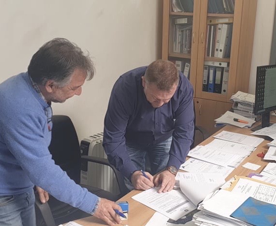 Η σύμβαση υπεγράφη από τον Πρόεδρο της Δ.Ε.Υ.Α. Θήρας και τον εκπρόσωπο της αναδόχου εταιρίας Αντώνη Νικολιά.