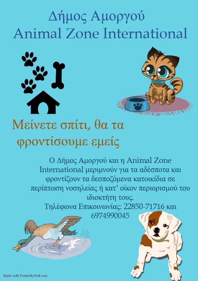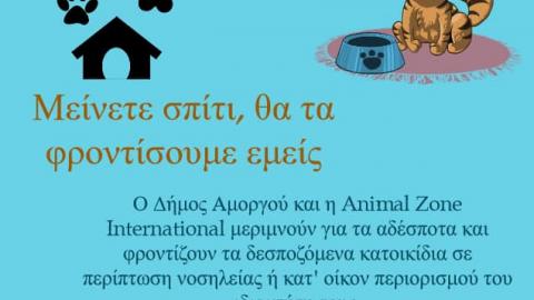 Ο Δήμος Αμοργού & η “ Animal Zone International” μεριμνούν για τα αδέσποτα και φροντίζουν για τα δεσποζόμενα κατοικίδια σε περίπτωση νοσηλείας ή κατ’οίκον περιορισμό του ιδιοκτήτη τους.