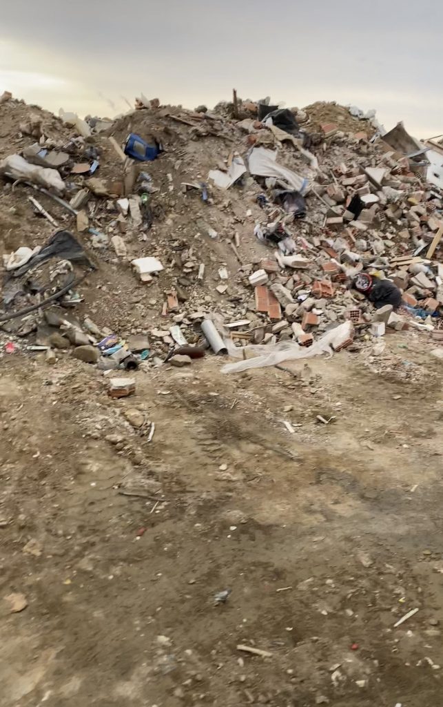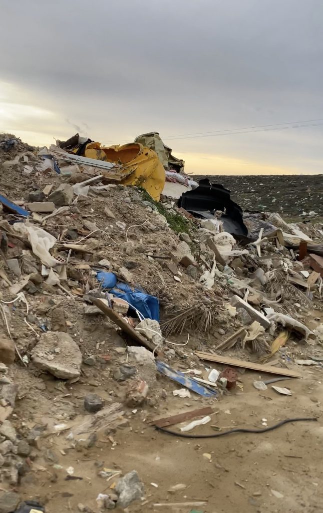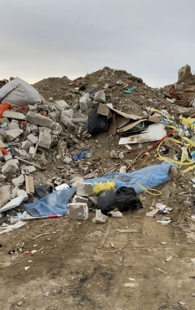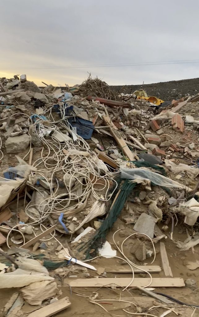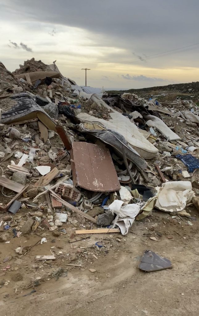 Όπως φαίνεται στο φωτογραφικό υλικό, που απέστειλε στο ΠΑΚΟΕ πολίτης της Μυκόνου, στο σημείο φαίνεται να γίνεται χύδην απόρριψη, τόσο οικιακών απορριμμάτων, όσο και αποβλήτων οικοδομής.
