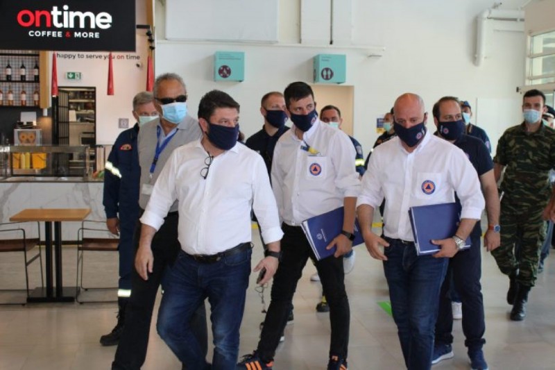 Στο πλαίσιο της περιοδείας του Υφυπουργού και των στελεχών της Γενικής Γραμματείας Πολιτικής Προστασίας στα νησιά του Αιγαίου, για την ενημέρωση των συναρμόδιων φορέων και του προσωπικού των περιφερειακών αεροδρομίων, σχετικά με την αντιμετώπιση πιθανών κρουσμάτων, ενόψει του “ανοίγματος” των διεθνών αερομεταφορών και προς την περιφέρεια από 1η Ιουλίου, ο κ. Χαρδαλιάς ανακοίνωσε την πρόθεση της κυβέρνησης για τρίμηνη μετακίνηση κλιμακίων υγειονομικών στελεχών των ενόπλων δυνάμεων στα νησιά με διεθνείς αερολιμένες, για τη διενέργεια στοχευμένων ελέγχων.