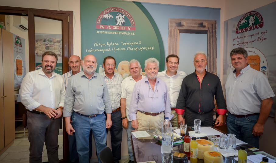 Ακολούθησε συζήτηση του κ. Α. Τσίπρα με το Δ.Σ. της Ε.Α.Σ. Νάξου, με επικεφαλής τον πρόεδρο, Δημήτρη Καπούνη. Τα μέλη του Δ.Σ. αναφέρθηκαν, μεταξύ πολλών άλλων ζητημάτων, στα προβλήματα που υπάρχουν στον αγροτικό τομέα στη Νάξο, στο μεγάλο «στοίχημα» του νέου (μέσω Προγράμματος) Τυροκομείου που επιθυμεί να κατασκευάσει η Ε.Α.Σ., στην ανάγκη ένταξης και των αγροτοκτηνοτρόφων σε κάποιον από τους ΚΑΔ των ενισχύσεων για να μπορέσουν να αντεπεξέλθουν στα προβλήματα που τους έχει δημιουργήσει ο κορονοϊός, στη δημιουργία Τυροκομείου στην ορεινή Νάξο από την «Ένωση» για την παρασκευή του (κατοχυρωμένου ως Π.Ο.Π. προϊόντος πια) «Αρσενικού» Νάξου και στην προσπάθεια της Ε.Α.Σ. Νάξου για κατοχύρωση ως προϊόντος Π.Ο.Π. των αμνοεριφίων της Νάξου και της Αμοργού. Κατατέθηκε στον κ. Τσίπρα και Υπόμνημα σχετικά με το σύνολο των προβλημάτων.