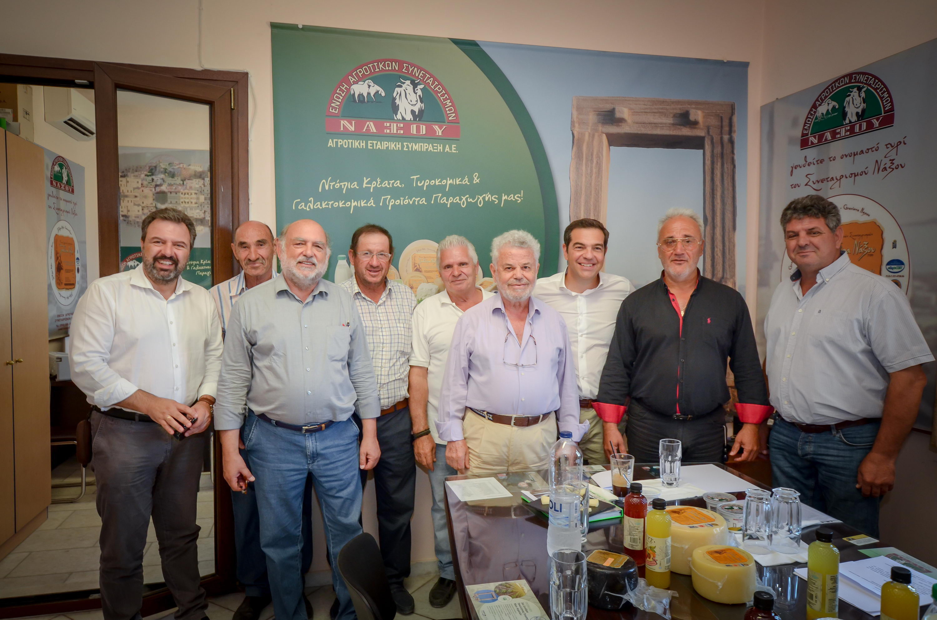 Ο κ. Τσίπρας πραγματοποίησε επίσκεψη στη Νάξο και στο πλαίσιο αυτής βρέθηκε στην «Ένωση». Τον υποδέχθηκε, δε, σύσσωμο το Δ.Σ. της Ε.Α.Σ., ενώ τον συνόδευαν μεταξύ άλλων ο Τομεάρχης Αγροτικού Τομέα του ΣΥΡΙΖΑ, κ. Σταύρος Αραχωβίτης, ο βουλευτής Κυκλάδων κ. Νίκος Συρμαλένιος και ο πρώην βουλευτής κ. Νίκος Μανιός.