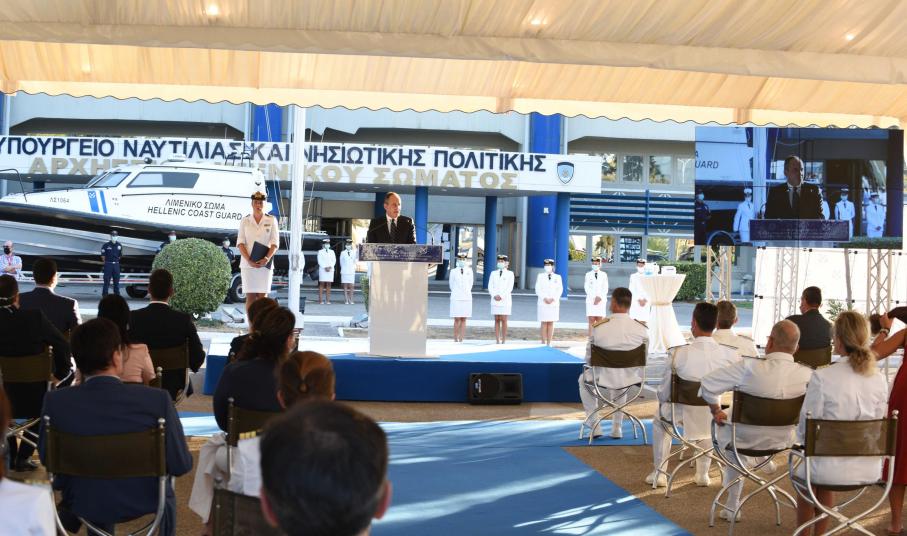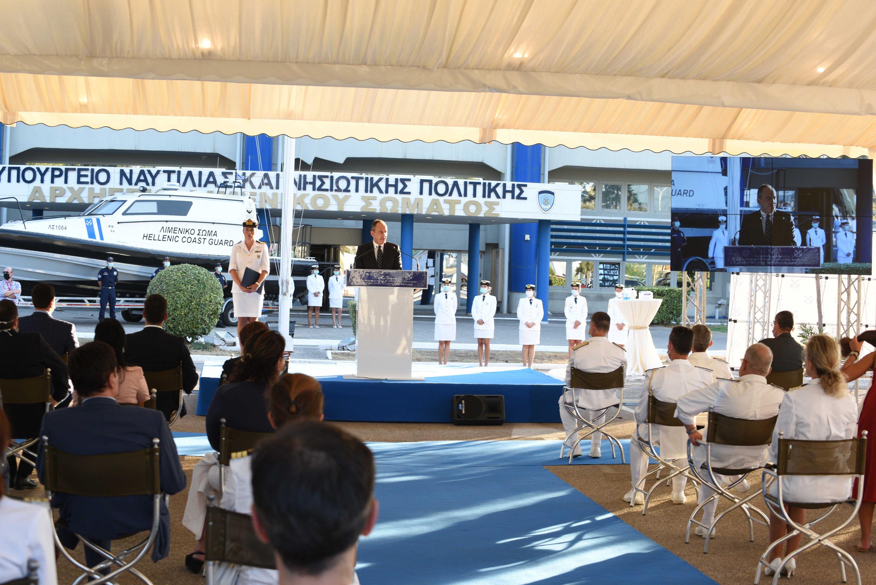 Τελετή παράδοσής του από το Υπουργείο Ναυτιλίας στο Λιμενικό Σώμα παρουσία και του Υπουργού Υγείας, Β. Κικίλια