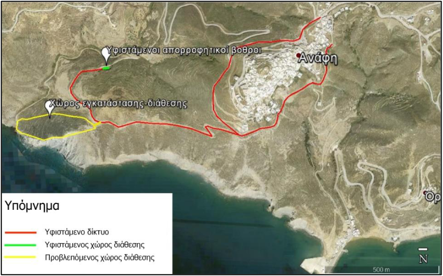 Σύμφωνα με την εγκεκριμένη μελέτη διαχείρισης – διερεύνησης καταλληλότητας συστήματος διαχείρισης αστικών λυμάτων Χώρας Δήμου Ανάφης, έχει προσδιοριστεί, κατόπιν αξιολόγησης δυνατών λύσεων, ως μονάδα επεξεργασίας, η κατασκευή συστήματος σηπτικής δεξαμενής και συστήματος υπεδάφιας διάθεσης σε γεωτεμάχιο, ιδιοκτησίας του Δήμου.