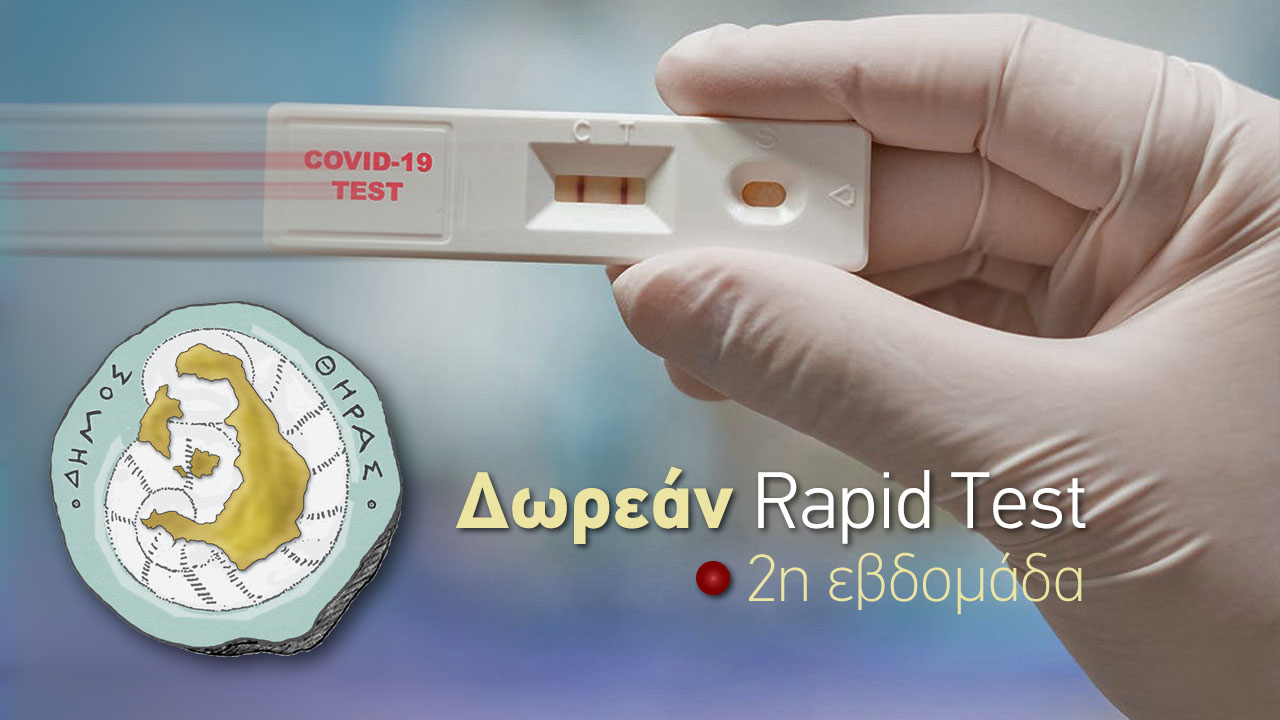 Συνεχίζεται για δεύτερη εβδομάδα η διενέργεια δωρεάν διαγνωστικών rapid test στο πλαίσιο ενεργειών για την καλύτερη ιχνηλάτηση στη διαδικασία πρόληψης και εκτίμησης του ιικού φορτίου του Covid-19 από το Δήμο Θήρας σε συνεργασία με το Γενικό Νοσοκομείο Θήρας.
