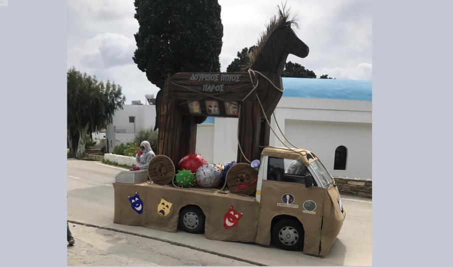 Η Κ.Δ.Ε.Π.Α.Π , το τελευταίο Σαββατοκύριακο της Αποκριάς, μετά από πρόταση του Προέδρου της Δημήτρη Αντιπαριώτη και την ομόφωνη απόφαση του ΔΣ, κατάφερε να δώσει λίγο καρναβαλικό χρώμα στο νησί μας, μετασκευάζοντας σε αποκριάτικο, τον “ Δούρειο Ίππο”, που ευγενικά μας παραχωρήθηκε από τον Πολιτιστικό Σύλλογο “Αρχιλόχος”.