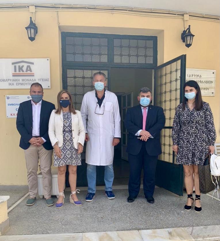 Αρχικά παραβρέθηκαν στο Γενικό Νοσοκομείο Σύρου «Βαρδάκειο & Πρώιο» όπου πραγματοποιήθηκε συνάντηση εργασίας στο Γραφείο του Διοικητή με το Διοικητικό Συμβούλιο του Νοσοκομείου, τους Διευθυντές Υπηρεσιών, τον Διευθυντή του Κέντρου Υγείας-λ, τον Τομεάρχη του ΕΚΑΒ, τον Σύλλογο των Εργαζομένων, Ιατρούς και Νοσηλευτικό προσωπικό. Στη συνέχεια περιηγήθηκαν στους χώρους του Νοσοκομείου και στα δύο Εμβολιαστικά του Κέντρα και παρακολούθησαν συνομιλία από τον χώρο της Τηλεϊατρικής με οικογένεια ωφελουμένων τηλεπαιδοψυχιατρικής στη Νάξο και τη διαδικτυακή σύνδεση με την 2η ΥΠΕ. Να σημειωθεί πως νωρίτερα το πρωί, ο κ. Φόρτωμας είχε προσέλθει στο εμβολιαστικό κέντρο Σύρου για να εμβολιαστεί κατά του covid19.