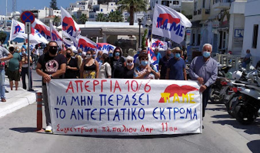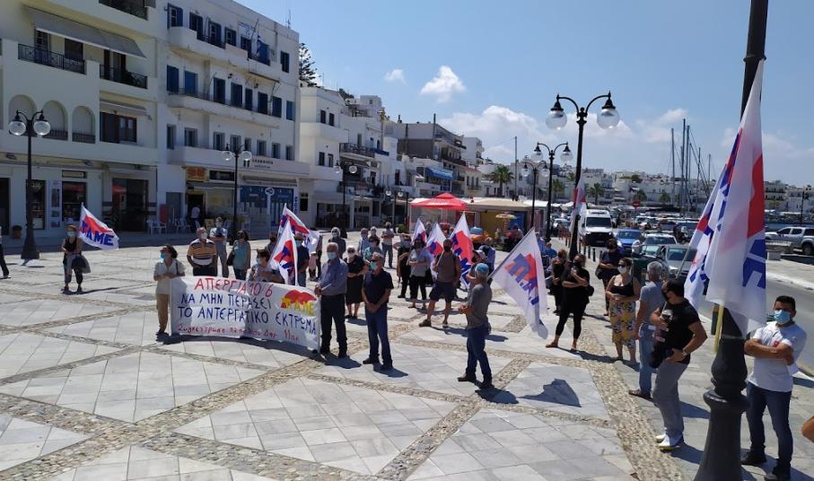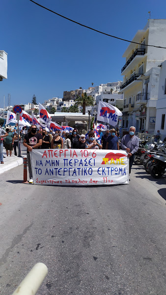 Από το βήμα της συγκέντρωσης καταδικάστηκε η απαράδεκτη δικαστική απόφαση να κριθεί παράνομη η απεργία της ΠΝΟ. Στη συνέχεια ακολούθησε δυναμική πορεία μέχρι το δημαρχείο Νάξου.