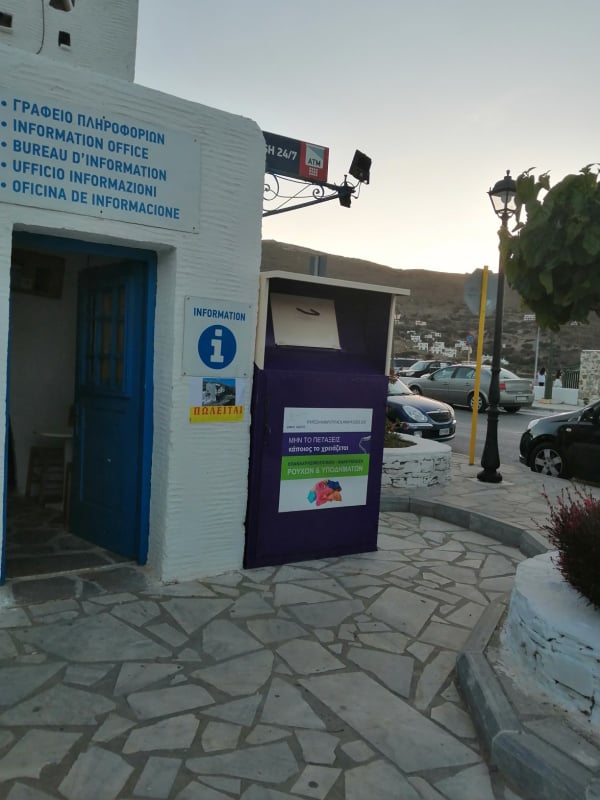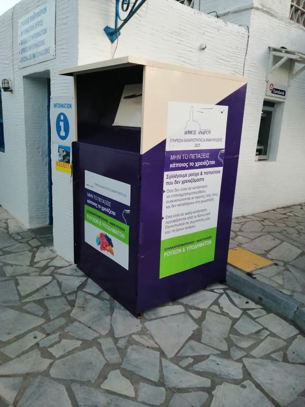 Ήδη τα κουτιά υποδοχής των ανακυκλώσιμων υλικών έχουν τοποθετηθεί σε Χώρα (παλιό ελικοδρόμιο Νειμποριό), Μπατσί (Λιμάνι), Κόρθι (πλησίον Αγροτικού Συνεταιρισμού Όρμου Κορθίου) και Γαύριο (Περιστεριώνας). Τα κουτιά αποτελούν δωρεά ιδιωτικής εταιρείας, χωρίς να προκαλείται οποιαδήποτε δαπάνη για το Δήμο μας.