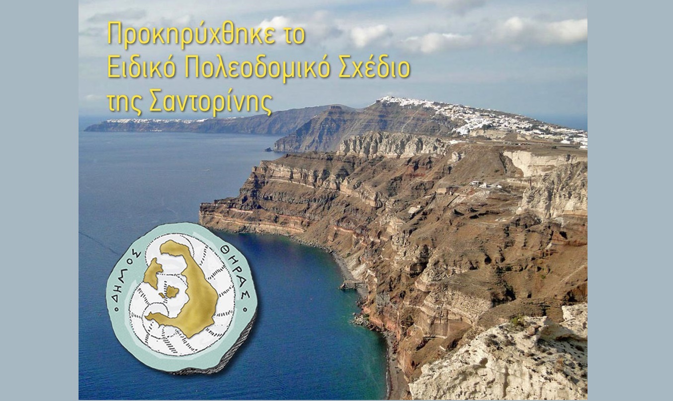Το Ειδικό Πολεοδομικό Σχέδιο της Σαντορίνης, προκηρύχθηκε με διεθνή ανοικτό διαγωνισμό από το Τεχνικό Επιμελητήριο Ελλάδας με προϋπολογισμό 495.000€. η προθεσμία που έχει ο ανάδοχος για την εκπόνηση του σχεδίου θα είναι 6 μήνες χωρίς δυνατότητα παράτασης.