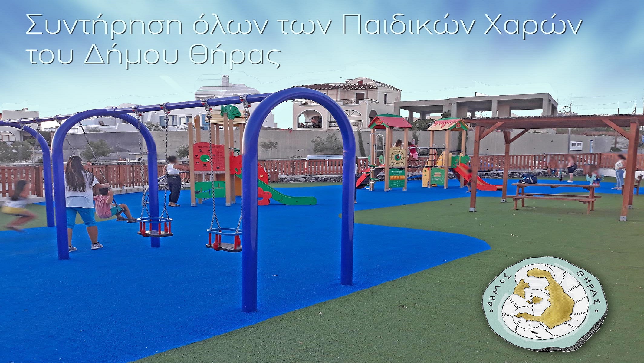 Ο Δήμος Θήρας ανακοινώνει ότι μετά την ολοκλήρωση των διαδικασιών, ξεκινάει αύριο, 28.09.2021 η ετησία συντήρηση όλων των παιδικών χαρών, που κατασκευάστηκαν από τον Δήμο Θήρα πέρυσι.