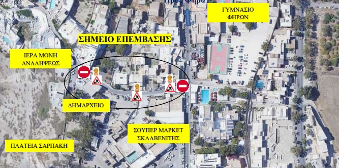 Κυκλοφοριακές ρυθμίσεις στα Φηρά λόγω απαραίτητων εργασιών αποκατάστασης οδοστρώματος λόγω βλάβης στο δίκτυο ύδρευσης της Δ.Ε.Υ.Α.Θ..
