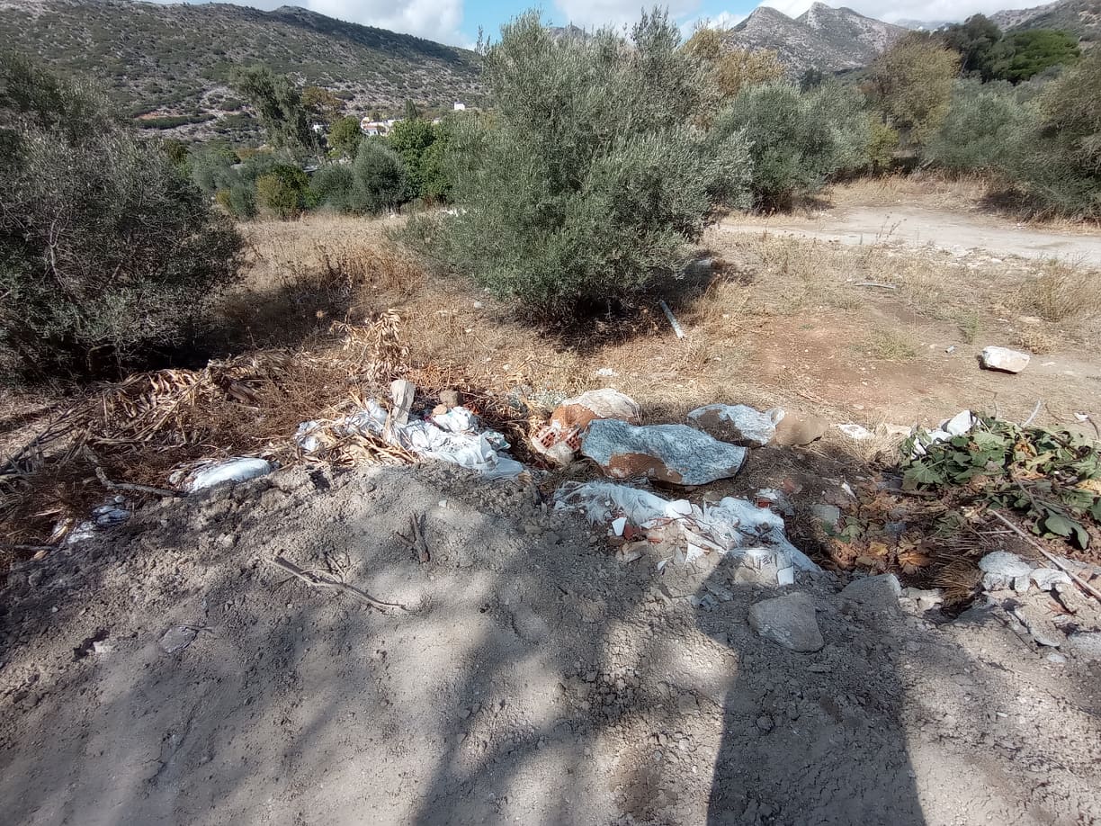 Το αγροτεμάχιο – λιοΰρι, που λειτουργεί ως δημοτικός χώρος στάθμευσης πίσω από το Γυμνάσιο Τραγαίας στο Χαλκί, έχει μετατραπεί σε χώρο εναπόθεσης αδρανών υλικών, κατεστραμμένων κουφωμάτων, υπολειμμάτων οικοδομικών υλικών και κατεστραμμένων δημοτικών κάδων απορριμμάτων. Το τραγελαφικό της υπόθεσης είναι ότι ο Δήμος έχει αναρτήσει στον χώρο πινακίδα με μήνυμα «Απαγορεύεται η ρίψη μπαζών και απορριμμάτων». Όλα αυτά είναι βεβαίως σε γνώση της Δημοτικής Αρχής, η οποία όχι μόνο δεν σταματάει την παράνομη απόρριψη στον χώρο αυτό, αλλά την ίδια στιγμή, χρησιμοποιεί τα υλικά αυτά για επιχωμάτωση του ίδιου χώρου.