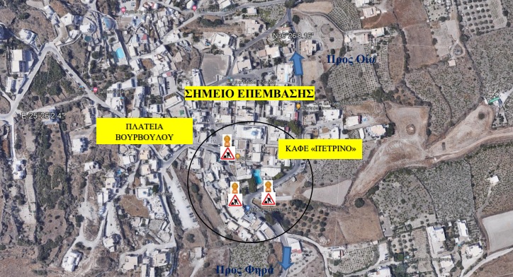 Η Δ.Ε.Υ.Α. Θήρας γνωστοποιεί κυκλοφοριακές ρυθμίσεις στην περιοχή του Βουρβούλου και συγκεκριμένα, από την καφετέρια «Πέτρινο» έως την πλατεία του Βουρβούλου , λόγω βλάβης στο δίκτυο ύδρευσης της Δ.Ε.Υ.Α.Θ. Κατά τη διάρκεια των εργασιών η διακοπή της κυκλοφορίας θα γίνεται ανά ρεύμα και ανά διαστήματα και θα ρυθμίζεται από το προσωπικό της Επιχείρησης. Παρακαλούνται, ωστόσο, οι οδηγοί να είναι προσεκτικοί και να τηρούν την προειδοποιητική σήμανση. Οι κυκλοφοριακές ρυθμίσεις θα πραγματοποιηθούν την Πέμπτη 09 Δεκεμβρίου από τις 8:00π.μ. ως και τις 14:00μ.μ. Σας ευχαριστούμε για την κατανόηση για την προσωρινή ενόχληση.