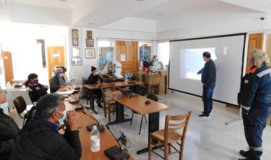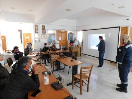 Η θεωρητική εκπαίδευση διεξήχθη την Τετάρτη 1 Δεκεμβρίουστην αίθουσα του Δημοτικού Συμβουλίου του ΔημαρχείουΑμοργού, λαμβάνοντας όλα τα απαραίτητα μέτρα προστασίας από τον COVID-19. Κατά τη διάρκειά της, αναλύθηκαν πολλά θέματα εκ των οποίων τα κυριότερα αφορούσαν στα πιθανά σενάρια διαρροής ρυπογόνων ουσιών στο θαλάσσιο περιβάλλον και στις μεθόδους αντιμετώπισης που συνιστώνται ανάλογα με το είδος του περιστατικού, με την σωστή επιλογή των αντιρρυπαντικών υλικών και μέσων από αυτά που διαθέτει το ΔΛΤ Αμοργού, προκειμένου η αντιμετώπιση της όποιας ρύπανσης να γίνει σωστά και γρήγορα. Επίσης δόθηκε πρόβλημα υποτιθέμενης ρύπανσης σε άσκηση επί χάρτου για την επίλυση του οποίου παρουσίασαν οι συμμετέχοντες την άποψη τους για την καλύτερη αξιοποίηση του συνόλου του αντιρρυπαντικού εξοπλισμού του ΔΛΤ Αμοργού και προβλήθηκε οπτικοακουστικό υλικό από άσκηση αντιμετώπισης θαλάσσιας ρύπανσης σε άλλη εγχώρια λιμενική εγκατάσταση.