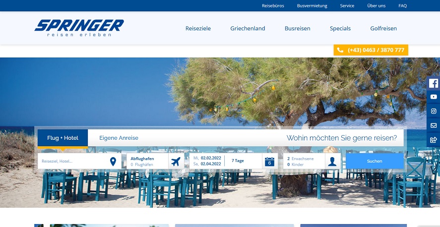 Πτήσεις σε περισσότερα από 20 ελληνικά νησιά και προορισμούς , μεταξύ των οποίων σε Σαντορίνη, Πάρο, Μήλο, Τήνο και Αμοργό,πρόκειται να προσφέρει σε εβδομαδιαία βάση ο αυστριακός τουρ οπερέιτορ Springer Reisen το καλοκαίρι του 2022.