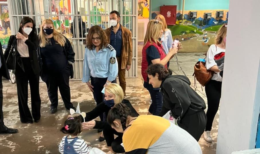 Η Κατερίνα Μονογυιού χάρισε δώρα στα παιδιά, τα οποία είναι ηλικίας έως τριων ετών, έπαιξε μαζί τους και άκουσε τους προβληματισμούς των γυναικών μητέρων που κρατούνται εκεί. Στη συνέχεια, η κ. Μονογυιού μαζί με τον Γενικό Γραμματέα Αντεγκληματικής Πολιτικής επισκέφτηκαν και το Κέντρο Απεξάρτησης Τοξικομανών Κρατουμένων Ελεώνα Θηβών, όπου ενημερώθηκαν από το στελεχιακό δυναμικό της πτέρυγας για τις συνθήκες κράτησης, τις μεθόδους απεξάρτησης και τις υποδομές.