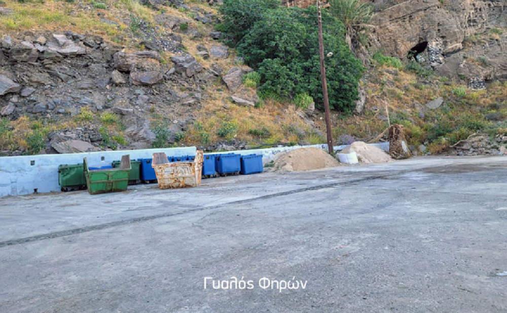 "Μετά την πλήρη αποκατάσταση με καθαρισμό και απολύμανση του χώρου εναπόθεσης απορριμμάτων στον Γυαλό των Φηρών, ολοκληρώθηκε και ο καθαρισμός του μονοπατιού στον Κόρφο Θηρασιάς, στο πλάι του οποίου είναι τοποθετημένοι οι κάδοι απορριμμάτων, που πλύθηκαν και απολυμάνθηκαν.