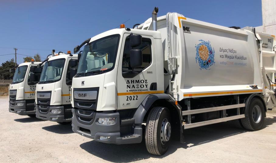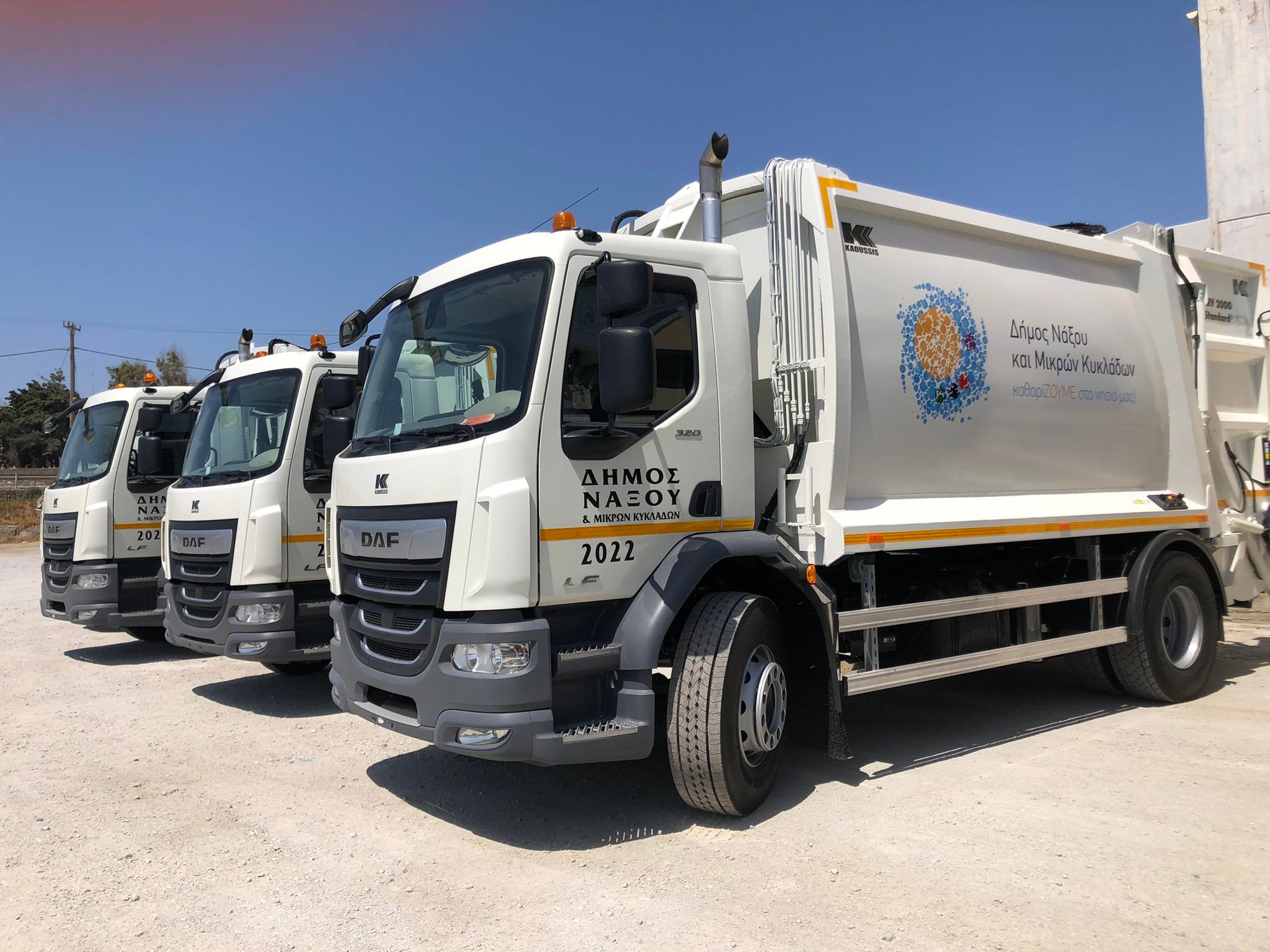Πέντε νέα οχήματα ενισχύουν από σήμερα τον μηχανολογικό εξοπλισμού του Δήμου Νάξου και Μικρών Κυκλάδων. Με στόχο τον εκσυγχρονισμό και τη βελτιστοποίηση της λειτουργίας των υπηρεσιών  Καθαριότητας, Ηλεκτροφωτισμού και Ύδρευσης, ο Δήμος προχώρησε στην προμήθεια 10 συνολικά οχημάτων με χρηματοδοτική μίσθωση (leasing) συνολικής αξίας 1.742.200 €. Ήδη σήμερα παραλήφθηκαν δύο απορριμματοφόρα οχήματα τύπου πρέσας, χωρητικότητας 16 κ.μ., ένα απορριμματοφόρο όχημα χωρητικότητας 12 κ.μ., ένα ημιφορτηγό κλειστού τύπου (VAN) 4X2 μ.β. και ένα ανατρεπόμενο φορτηγό 7,5tn με γερανό και γάντζο.