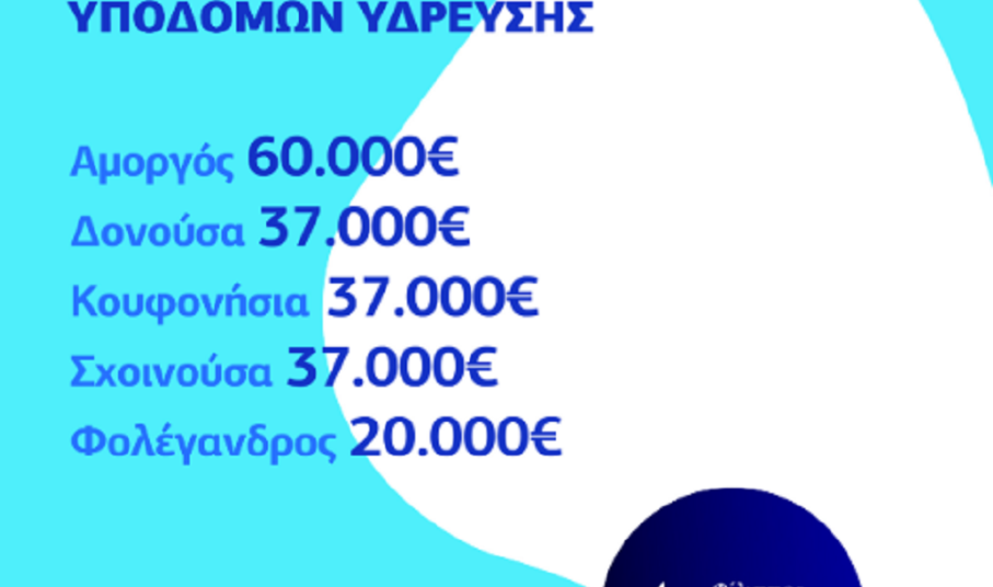 Συγκεκριμένα, για το Δήμο Νάξου και Μικρών Κυκλάδων, με την πολύτιμη συνδρομή του Αντιδημάρχου Ύδρευσης, κ. Μανώλη Πολυκρέτη, αλλά και της Υπηρεσίας του Δήμου, εγκρίθηκε το ποσό των 37.000,00€, για την προμήθεια και εγκατάσταση αντλιών θαλασσινού νερού και προώθησης καθαρού νερού αφαλάτωσης νήσου Σχοινούσας, το ποσό των 37.000,00€, για την προμήθεια και εγκατάσταση υλικών επισκευής βλαβών της μονάδας αφαλάτωσης νήσου Δονούσας και το ποσό των. 37.000,00€, για την επαύξηση παραγωγής υφιστάμενης μονάδας αφαλάτωσης 600μ3/ημέρα κατά 100μ3/ημέρα στην Δημοτική Κοινότητα Κουφονησίων. Για το Δήμο Αμοργού, εγκρίθηκε το ποσό των 60.000€, για την κάλυψη μέρους των δαπανών κατανάλωσης ηλεκτρικής ενέργειας έτους 2022, από τη λειτουργία των μονάδων αφαλάτωσης στις Δημοτικές Κοινότητες Καταπόλων και Αιγιάλης και τέλος, για το Δήμο Φολεγάνδρου, εγκρίθηκε συμπληρωματική επιχορήγηση ύψους 20.000,00€, για την αποκατάσταση του δικτύου ύδρευσης στο παραλιακό τμήμα του οικισμού Καραβοστάσι. Για την επίτευξη των παραπάνω, σημαντική ήταν και η συνδρομή των Δημάρχων Νάξου, Αμοργού και Φολεγάνδρου.