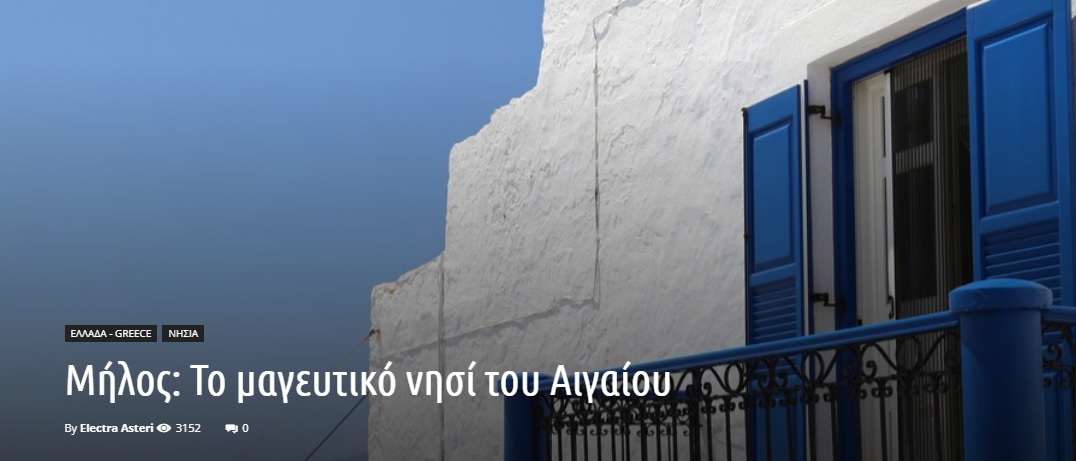Την ειδυλλιακή πλευρά της Μήλου προέβαλε προ ολίγου σήμερα από την τηλεόραση του ΣΚΑΙ η εκπομπή Happy Traveller με τον Ευτύχη Μπλέτσα, στο πλαίσιο της κρουαζιέρας της Celestial με τον ίδιο χαρακτηρισμό "ειδυλλιακό Αιγαίο". Μια ακόμα απόδειξη της δημοφιλίας του κυκλαδίτικου νησιού που τελευταία γνωρίζει μεγάλη δημοσιότητα χάρη και στις επιλογές εκατομμυρίων αναγνωστών μεγάλων Μέσων Ενημέρωσης του εξωτερικού.