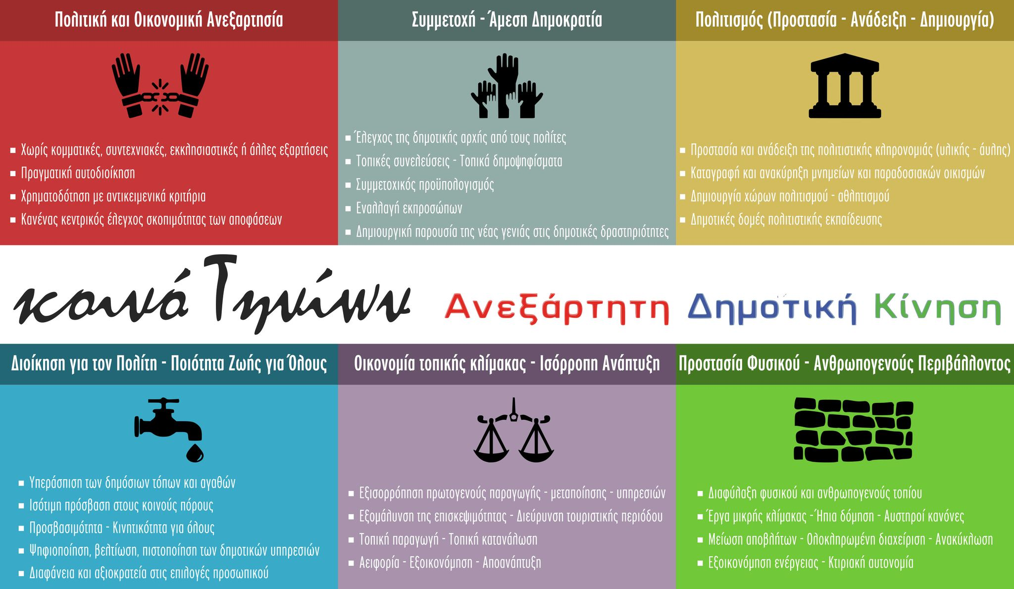 Την Κυριακή 19 Φεβρουαρίου 2023, η Ανεξάρτητη Δημοτική Κίνηση "Κοινό Τηνίων" παρουσιάζει τις βασικές θέσεις της σε έξι πολιτικούς άξονες, στην αίθουσα της Μοσχούλειου Σχολής στις 11.00.