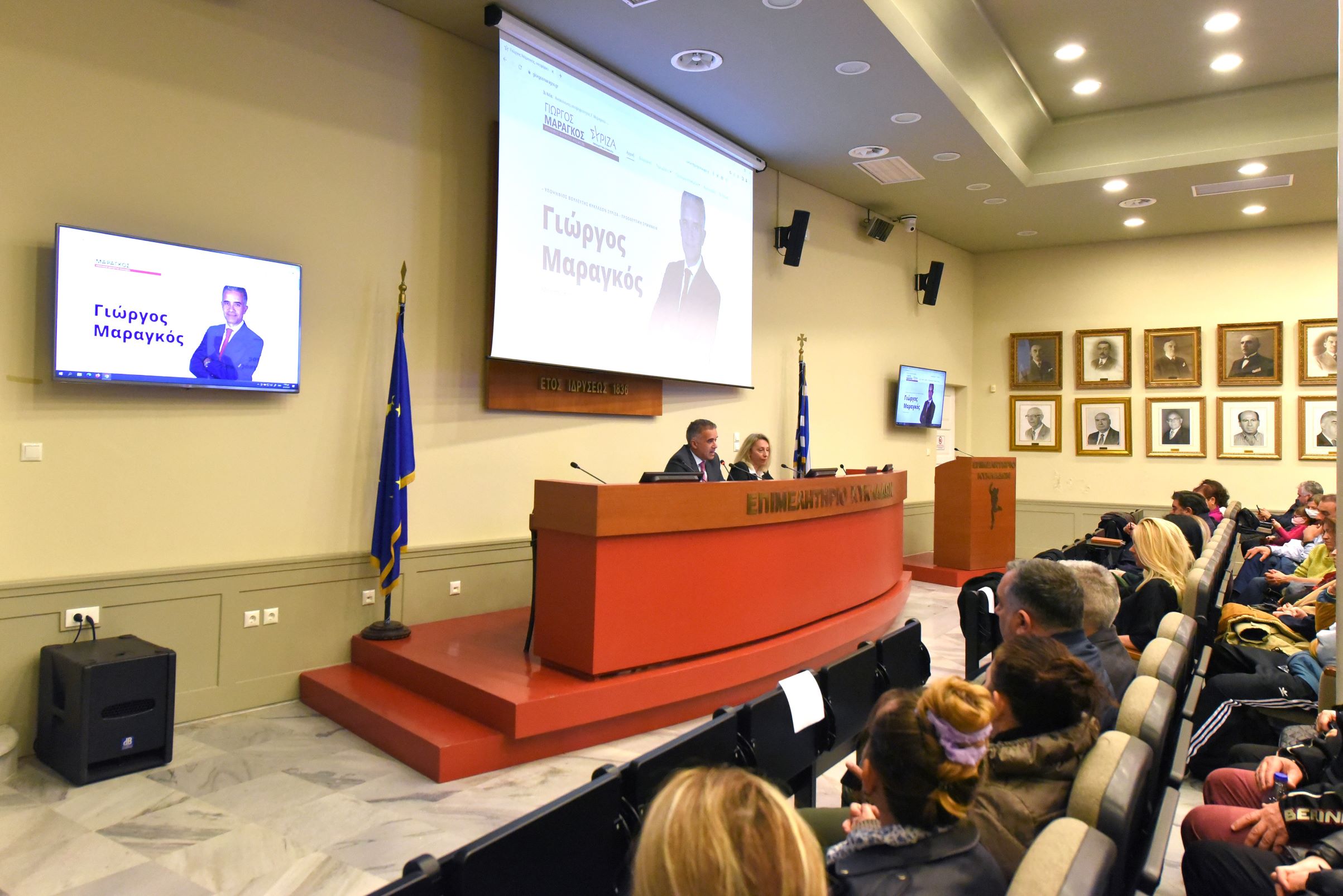 Στη συνέχεια, πραγματοποιήθηκε σύντομη βιογραφική παρουσίαση του Γιώργου Μαραγκού ενώ ο ίδιος, στην ομιλία του, προχώρησε στην άσκηση σκληρής κριτικής στην κυβέρνηση της ΝΔ καθώς και στη διατύπωση συγκεκριμένων θέσεων και προτάσεων αναφορικά με την πολιτική επικαιρότητα, το πρόγραμμα του ΣΥΡΙΖΑ-ΠΣ, το διακύβευμα των επερχόμενων εκλογών ενώ εξέφρασε με βεβαιότητα ότι ο ΣΥΡΙΖΑ-ΠΣ θα είναι ο νικητής των εκλογών αποτελώντας την κυρίαρχη πολιτική δύναμη στη νέα προοδευτική και δημοκρατική διακυβέρνηση της χώρας.