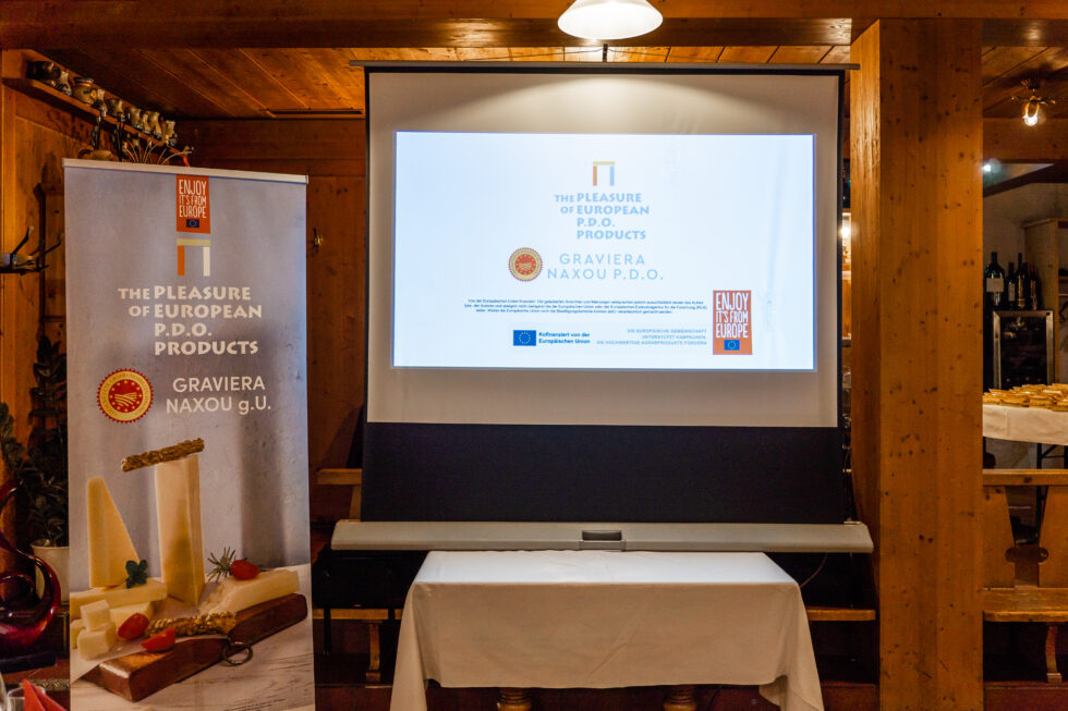 Ας σημειωθεί, ότι στο πλαίσιο του προαναφερθέντος διετούς ευρωπαϊκού προγράμματος προβλέπεται, μεταξύ άλλων, η διοργάνωση εκδηλώσεων γευσιγνωσίας σε 25 σημεία πώλησης στη Γερμανία, κατά προτίμηση σε μεγάλες γερμανικές αλυσίδες τροφίμων αλλά και σε εταιρείες χονδρεμπορίου ελληνικών συμφερόντων, όπου θα τοποθετηθούν ειδικά σχεδιασμένα περίπτερα και θα διανεμηθούν στους καταναλωτές ατομικές συσκευασμένες μερίδες δειγμάτων της Γραβιέρας Νάξου Π.Ο.Π. της Ένωσης Αγροτικών Συνεταιρισμών Νάξου.