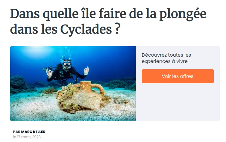 Μια ακόμα διάσταση των εναλλακτικών δυνατοτήτων της Πάρου και της Μήλου, αυτή τη φορά του καταδυτικού τουρισμού παρουσιάζει η γαλλική ταξιδιωτική ιστοσελίδα genetationvoyage.fr Τα δύο νησιά συγκαταλέγονται σε αφιέρωμα στο οποίο περιλαμβάνονται επίσης η Σαντορίνη, η Αμοργός, η Νάξος και η Ίος.