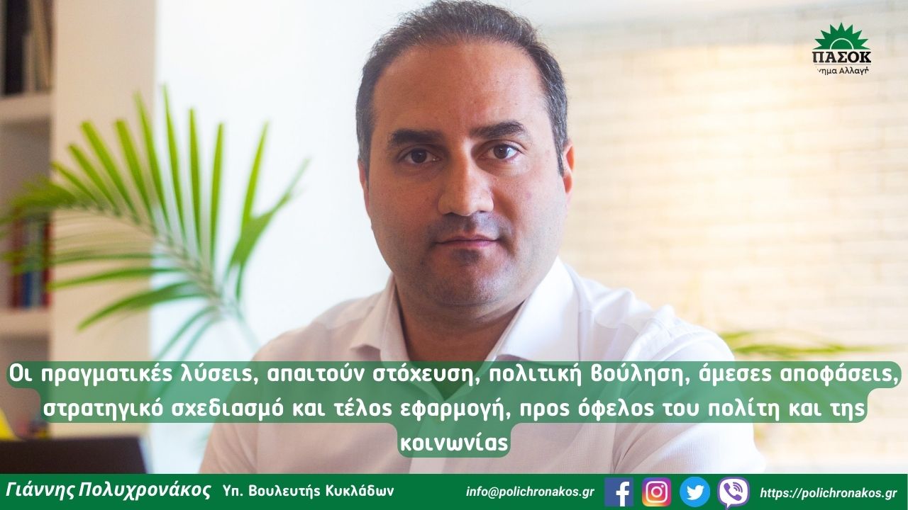 Στην ανακοίνωση της Κυβέρνησης για την αύξηση του κατώτατου μισθού, αναφέρθηκε ο υπ. Βουλευτής Κυκλάδων και αν. Τομεάρχης Νησιωτικής Πολιτικής του ΠΑΣΟΚ κ. Γιάννης Πολυχρονάκος, επισημαίνοντας τα εξής: