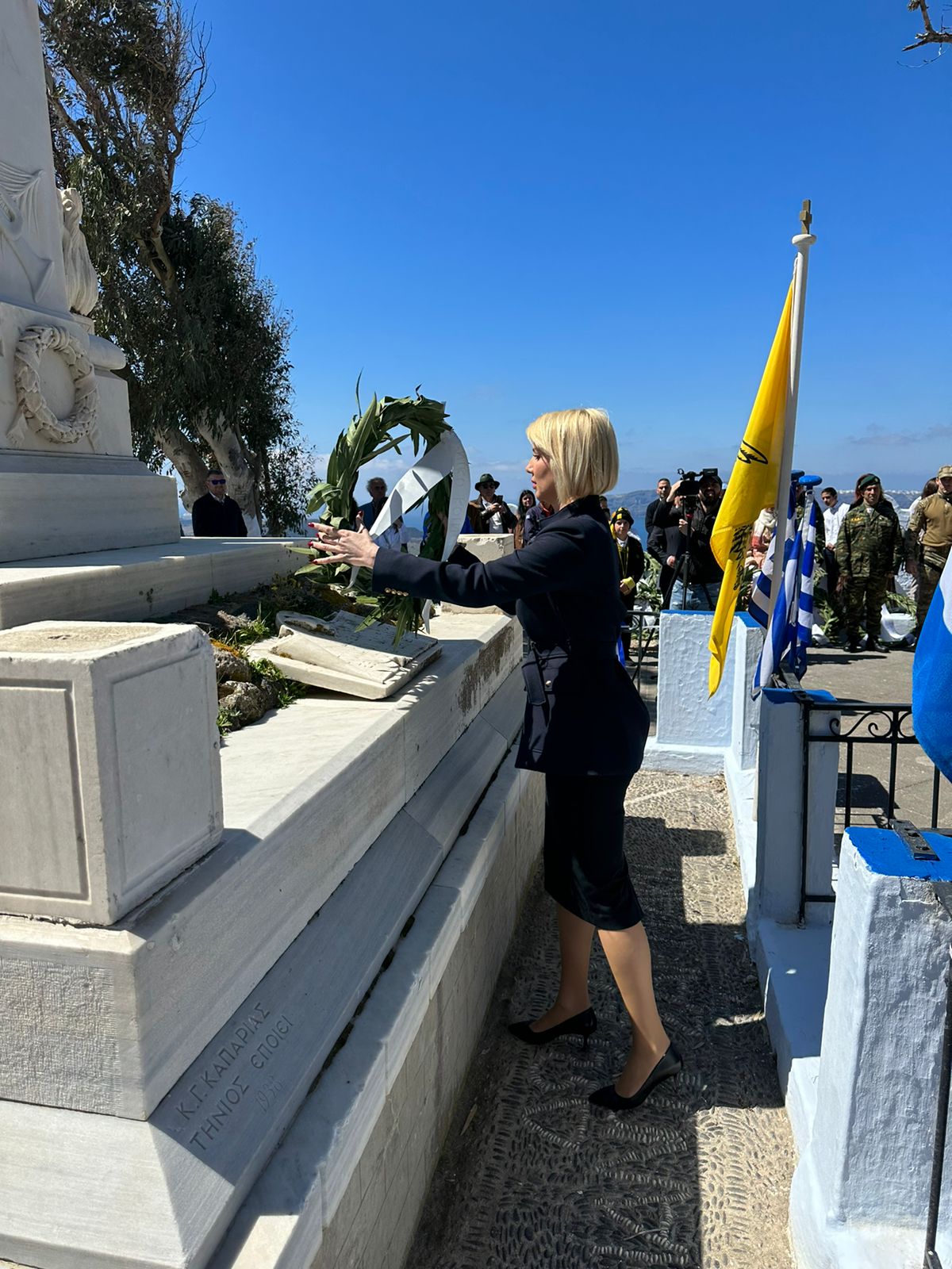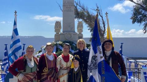 Η βουλευτής Κυκλάδων της Νέας Δημοκρατίας κ. Κατερίνα Μονογυιού παρέστη στη Δοξολογία στο Εμπορείο και στα Φηρά της Περιφερειακής Ενότητας Θήρας και κατέθεσε στεφάνι ως εκπρόσωπος της Βουλής των Ελλήνων. Στη συνέχεια, η Κατερίνα Μονογυιού παρακολούθησε την μαθητική παρέλαση για την Εθνική Επέτειο της 25ης Μαρτίου.
