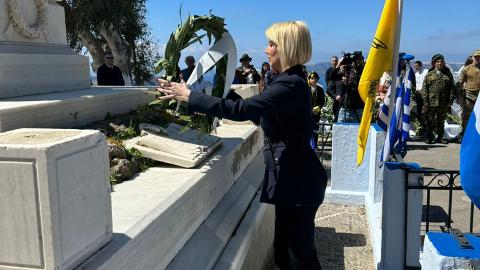 «Η σημερινή ημέρα είναι ξεχωριστή για τον Ελληνισμό και την Ορθοδοξία. Η 25η Μαρτίου 1821 αποτελεί πηγή έμπνευσης για μικρούς και μεγάλους και μας γεμίζει με υπερηφάνεια. Η ιστορία του ανεξάρτητου ελληνικού κράτους είναι πάνω από όλα η ιστορία των ανθρώπων του. Τιμούμε τους Ήρωες που θυσιάστηκαν για την ελευθερία της Πατρίδας και δεν ξεχνάμε ποτέ τον αγώνα τους. Σήμερα, είμαστε οπλισμένοι με τα διδάγματα που γέννησαν το σύγχρονο κράτος μας: την ενότητα, την αλληλεγγύη και την εμπιστοσύνη στις δυνάμεις μας. Πορευόμαστε με εθνική αυτοπεποίθηση και όραμα για να κάνουμε την Ελλάδα μας πρωταγωνίστρια της σύγχρονης εποχής. Χρόνια πολλά σε κάθε Ελληνίδα και σε κάθε Έλληνα.»