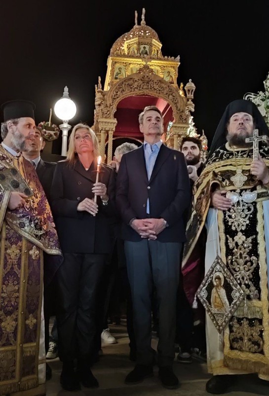 Στην Τήνο ο Μητσοτάκης - Παρακολούθησε την ακολουθία και την περιφορά του Επιταφίου