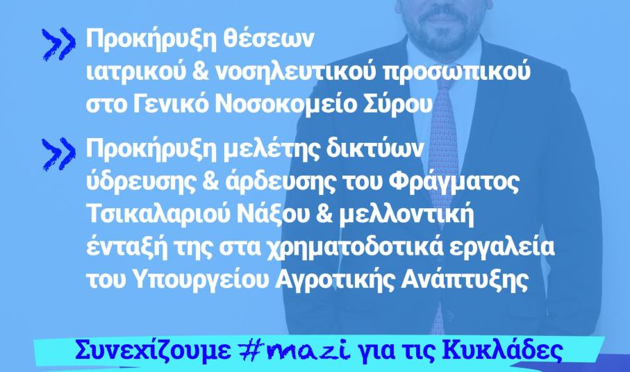 -Την προκήρυξη θέσεων ιατρικού και νοσηλευτικού προσωπικού στο Γενικό Νοσοκομείο Σύρου