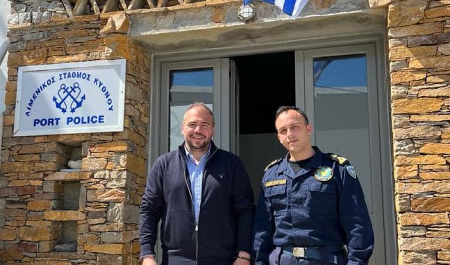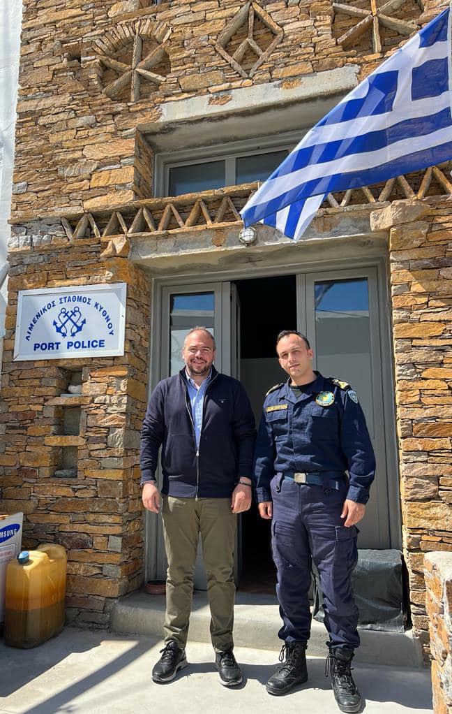 Κατόπιν, είχε επαφή με τον Δήμαρχο Σταμάτη Γαρδέρη και με τον Διοικητή του Αστυνομικού Σταθμού Αλέξιο Πανόπουλο. Επίσης, επισκέφθηκε τον Λιμενικό Σταθμό και ενημερώθηκε για τη λειτουργία του από τον Λιμενοσταθμάρχη Μηνά Αρτόπουλο. Τέλος, καθ' όλη την επίσκεψή του ο υπ. Βουλευτής είχε την ευκαιρία να επικοινωνήσει το έργο της Κυβέρνησης της Νέας Δημοκρατίας για τη χώρα αλλά ειδικότερα για τα νησιά των Κυκλάδων και της Κύθνου.